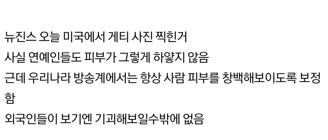 우리나라에서 찍은 뉴진스는 이렇게 피부 하얗게 나왔는데
