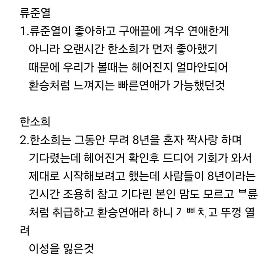 류준열 한소희 현재 상태 한장정리