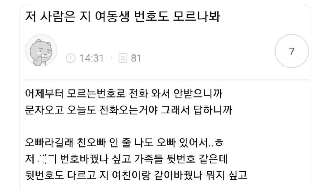 에휴 저 사람은 지 여동생 번호도 모르나봐.jpg