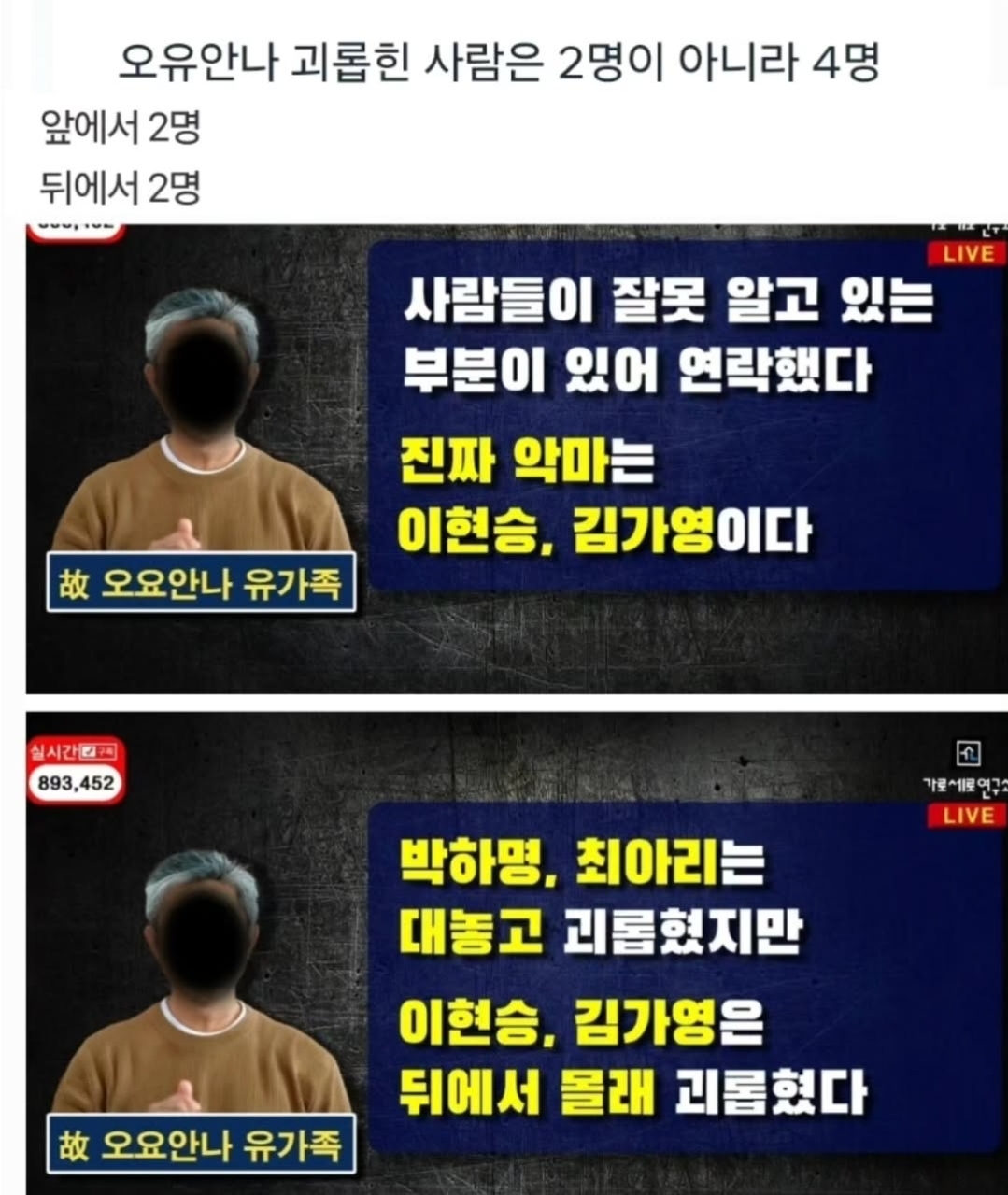 유가족이 오요안나 뒷담화하는 기상캐스터 4명 카톡 내용 공개함